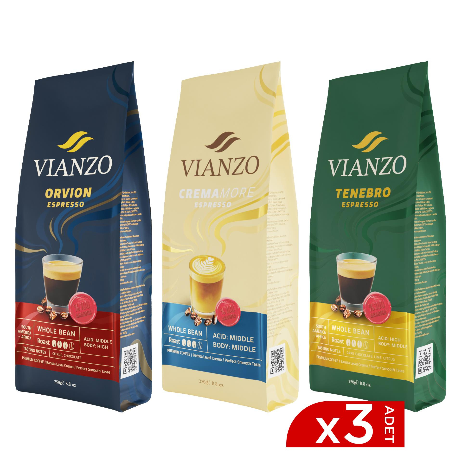 Vianzo Espresso Çekirdek Kahve Avantaj Paketi 4, %100 Arabica 3x250 g