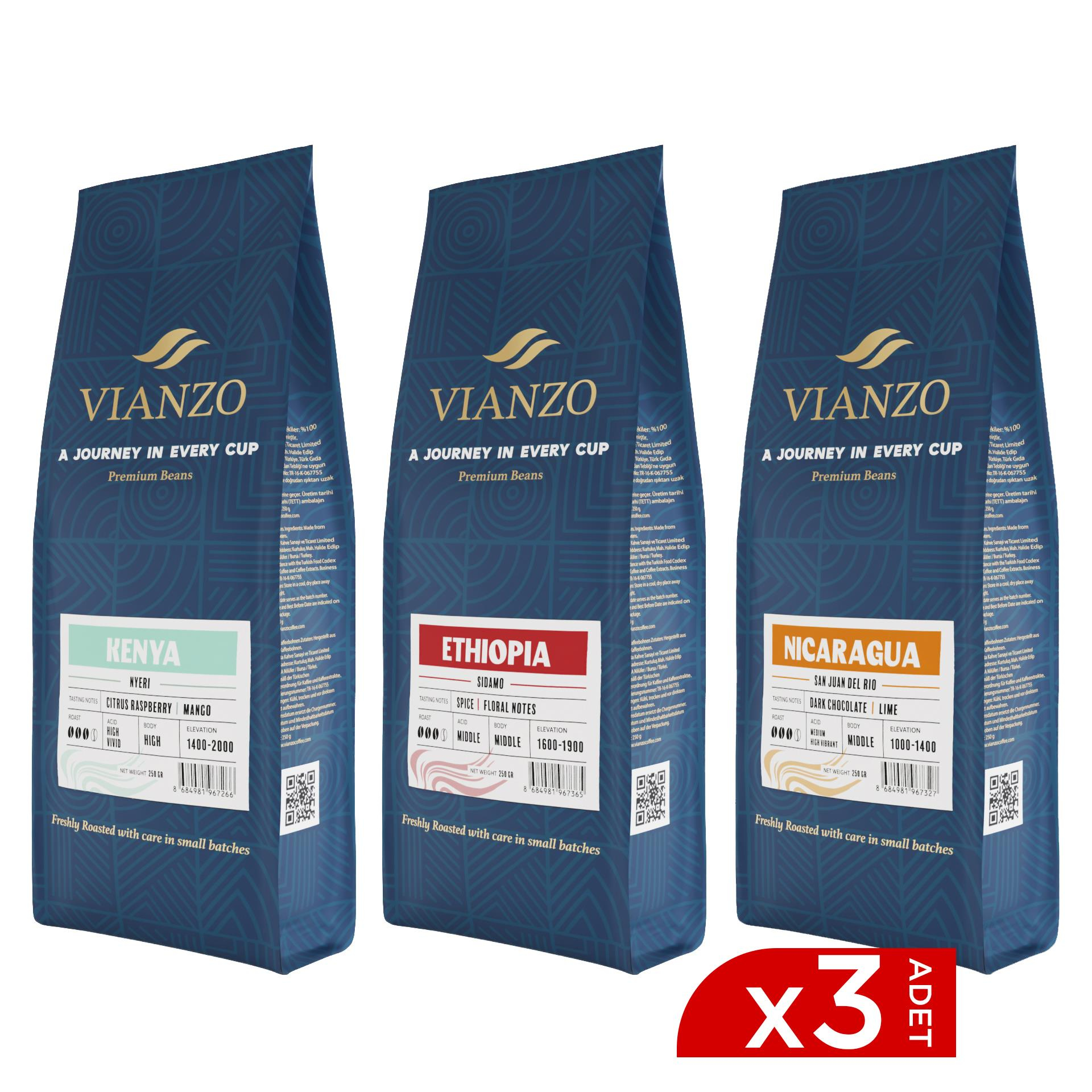Vianzo Yöresel Çekirdek Kahve Avantaj Paketi 2, %100 Arabica 3x250 g