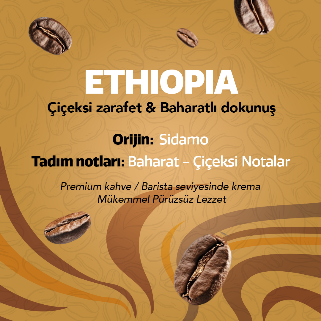 Asidite: Orta Gövde: Orta Sertlik: Orta Orijin: Ethiopia - Sidamo Rakım: 1600-1900 m Tadım Notları: Baharat, Çiçeksi Notalar Kavrum: Hafif Orta