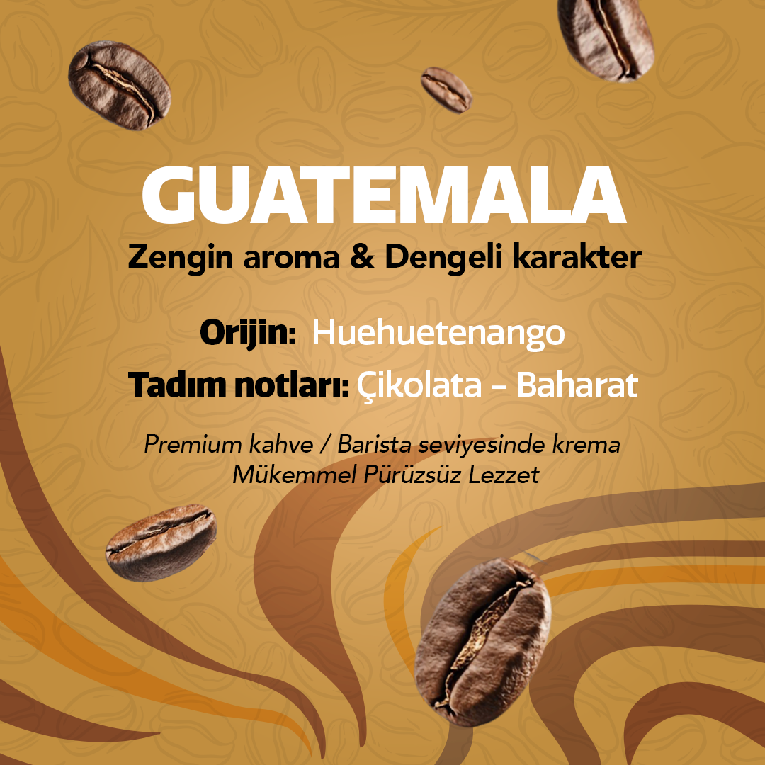 Zengin Aroma & Dengeli Karakter Huehuetenango Single Origin Guatemala’nın en prestijli bölgelerinden biri olan Huehuetenango, yüksek rakımı ve ideal iklimiyle kompleks aromalar geliştiren özel kahveleriyle bilinir. 1400–1700 metre arasında yetişen bu çekirdekler, doğal tatların belirgin şekilde öne çıkabildiği, dengeli ama karakterli bir profil sunar. İlk yudumda çikolatanın yumuşak tatlılığı, hemen ardından gelen baharat tonlarının sıcak derinliğiyle birleşerek damakta katmanlı bir lezzet oluşturur. Orta kavrum, kahvenin hem tatlı hem baharatlı yönlerini doğru şekilde ortaya çıkarırken, orta asidite içimi canlı fakat konforlu kılar. Hem filtre kahve hem espresso tarzı demlemelerde aromatik yapısını koruyan Guatemala, günlük içimde güvenilir bir kalite isteyenlere olduğu kadar, nitelikli kahve profillerini keşfetmek isteyenlere de hitap eder.